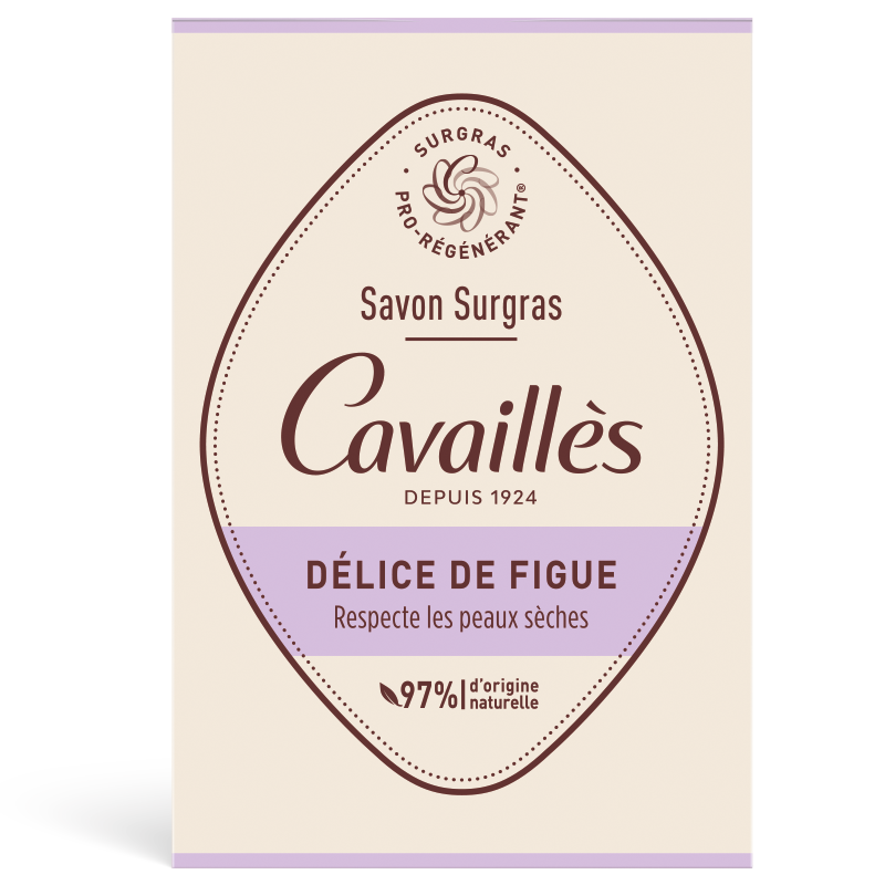 On aime : Sa formule composée à 97% d’ingrédients d’origine naturelle.La Savon Surgras Délice de Figue Cavaillès respecte et protège les peaux sèches.