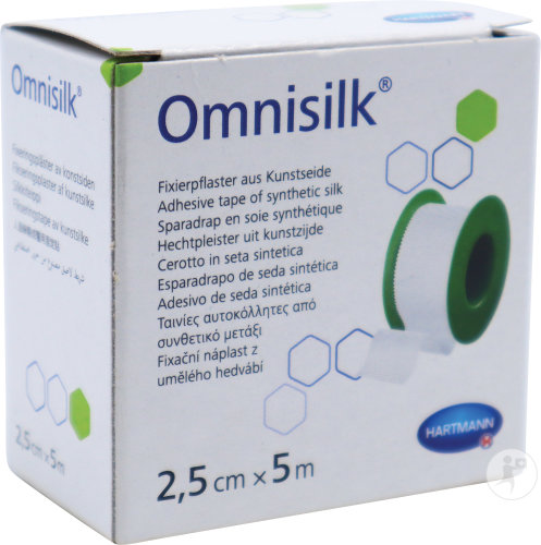 Sparadrap en Soie Synthétique Hartmann Omnisilk, idéal pour fixer pansements, sondes et cathéters chez les patients à peau sensible. Appliquer sur peau propre et sèche.