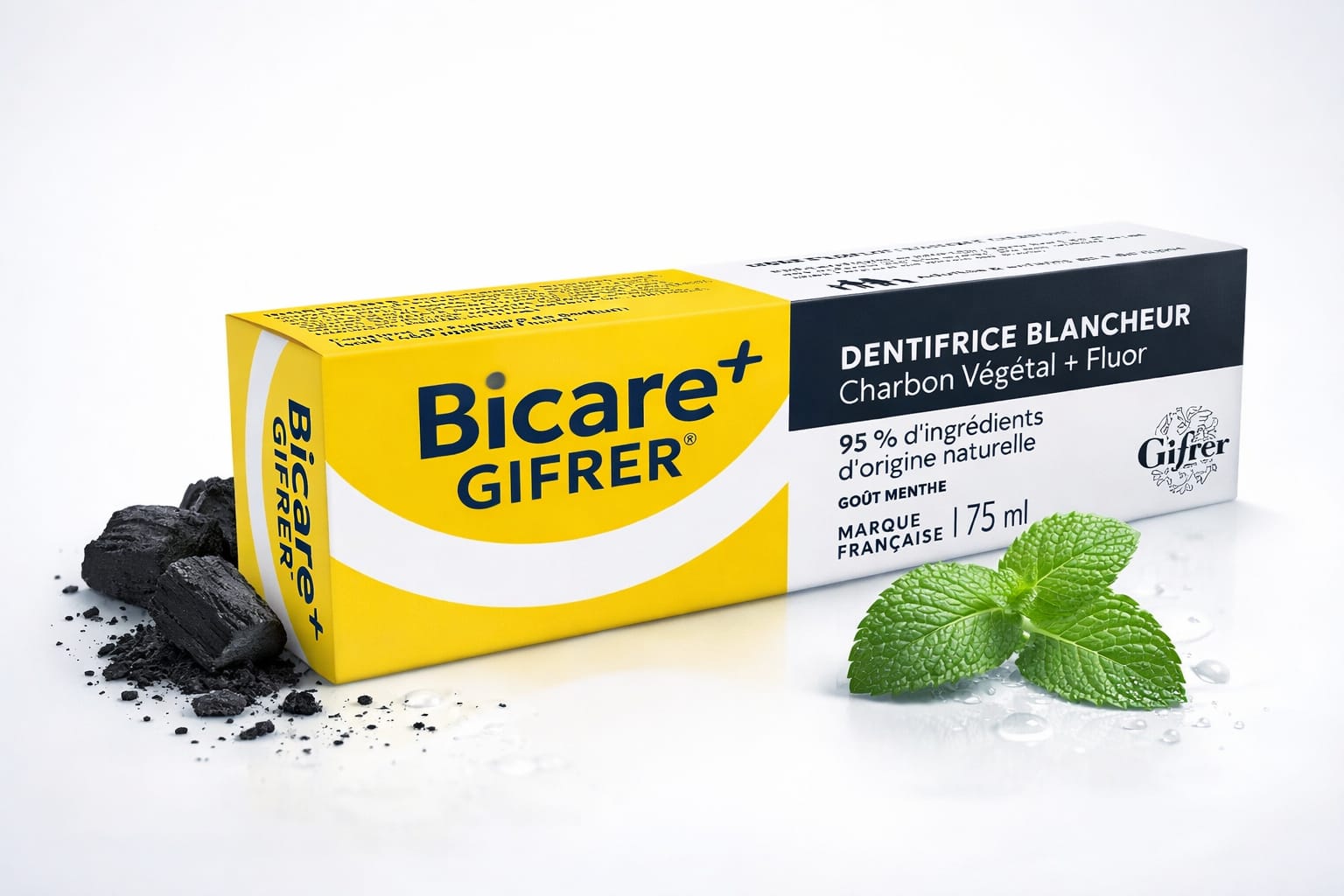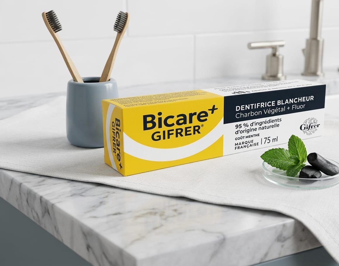 Le dentifrice blancheur au charbon Bicare+ est un soin bucco-dentaire, contient 95% d’ingrédients d’origine naturelle, formulé pour éliminer les taches dentaires et révéler la blancheur naturelle des dents. Grâce à sa poudre de charbon végétal, il nettoie en profondeur tout en respectant l’émail.