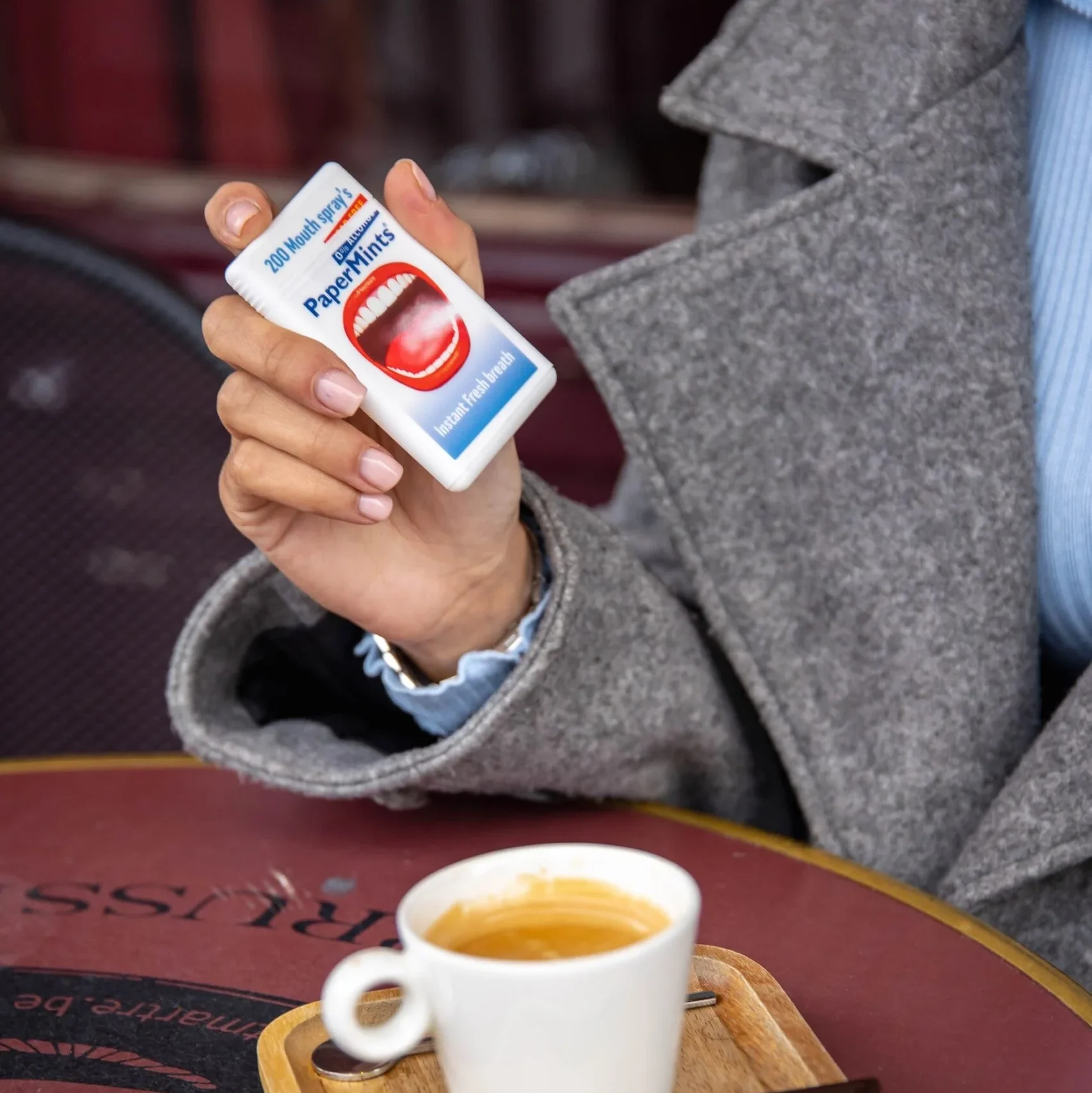 Le spray buccal PaperMints, quant à lui, agit en un seul pschitt pour neutraliser les mauvaises odeurs et redonner à votre bouche une sensation de propreté instantanée.